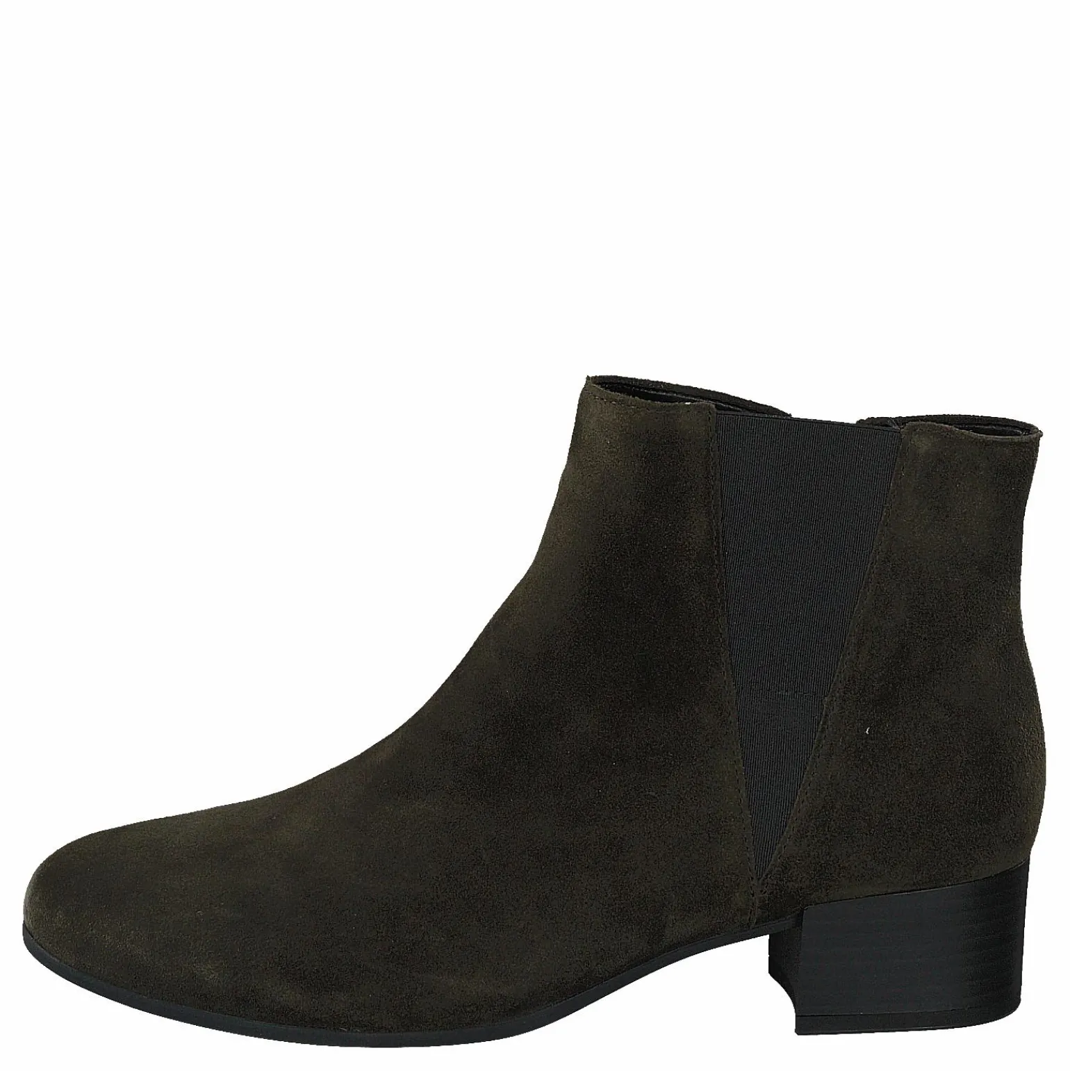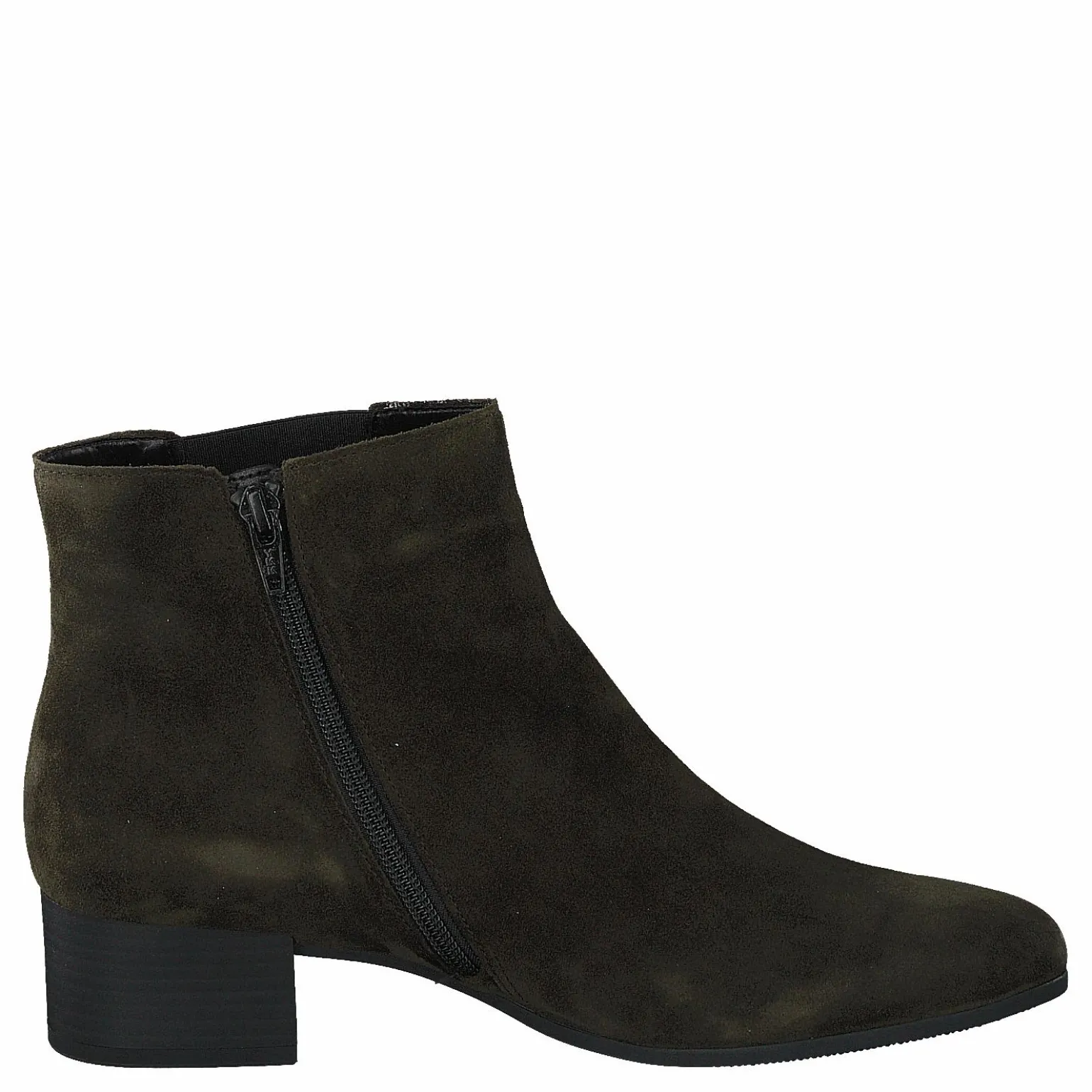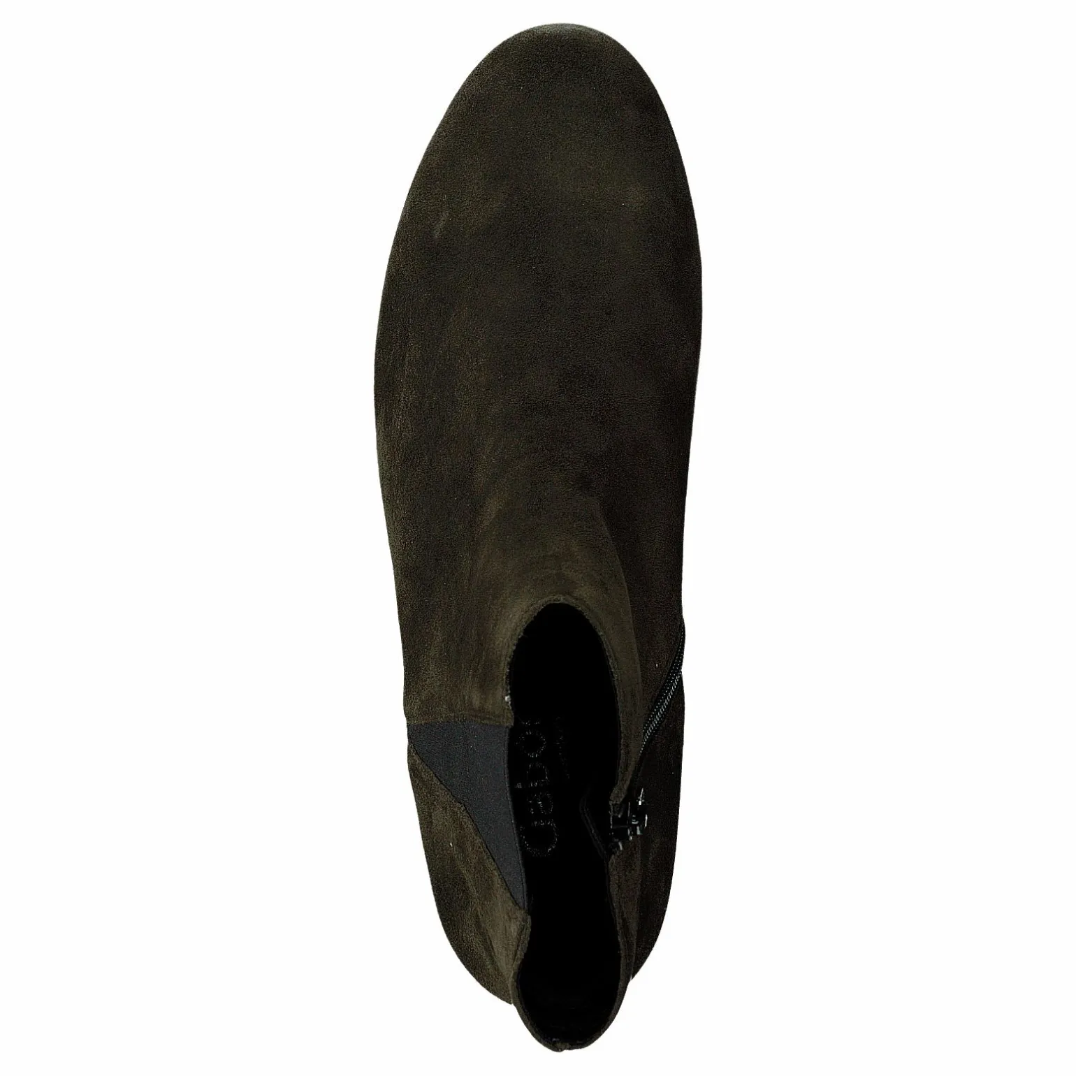 Damklacken Gabor 32.812.34 är en rik svart mockastövel med en rund, stängd tå och en mandelformad, spetsig, lätt långsträckt klack. Skon har en anpassad hälflik och en dragkedja i sidan för enkel på och av.