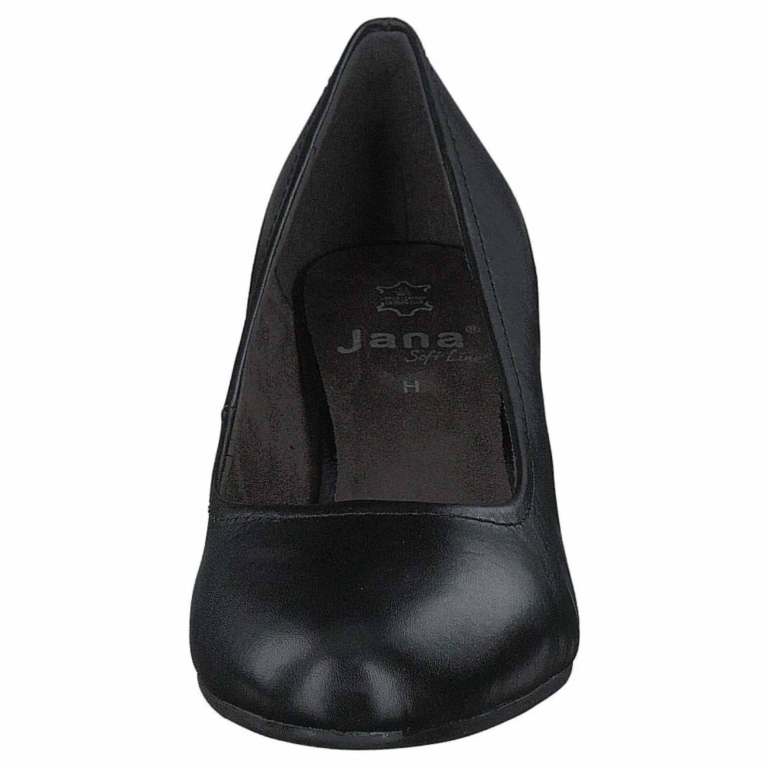 Janas topprankade svarta läderklackar är perfekta för arbete eller lek. Med en chic design och mellanhög klack är den här stilen ett måste för alla professionella eller moderiktiga kvinnor.