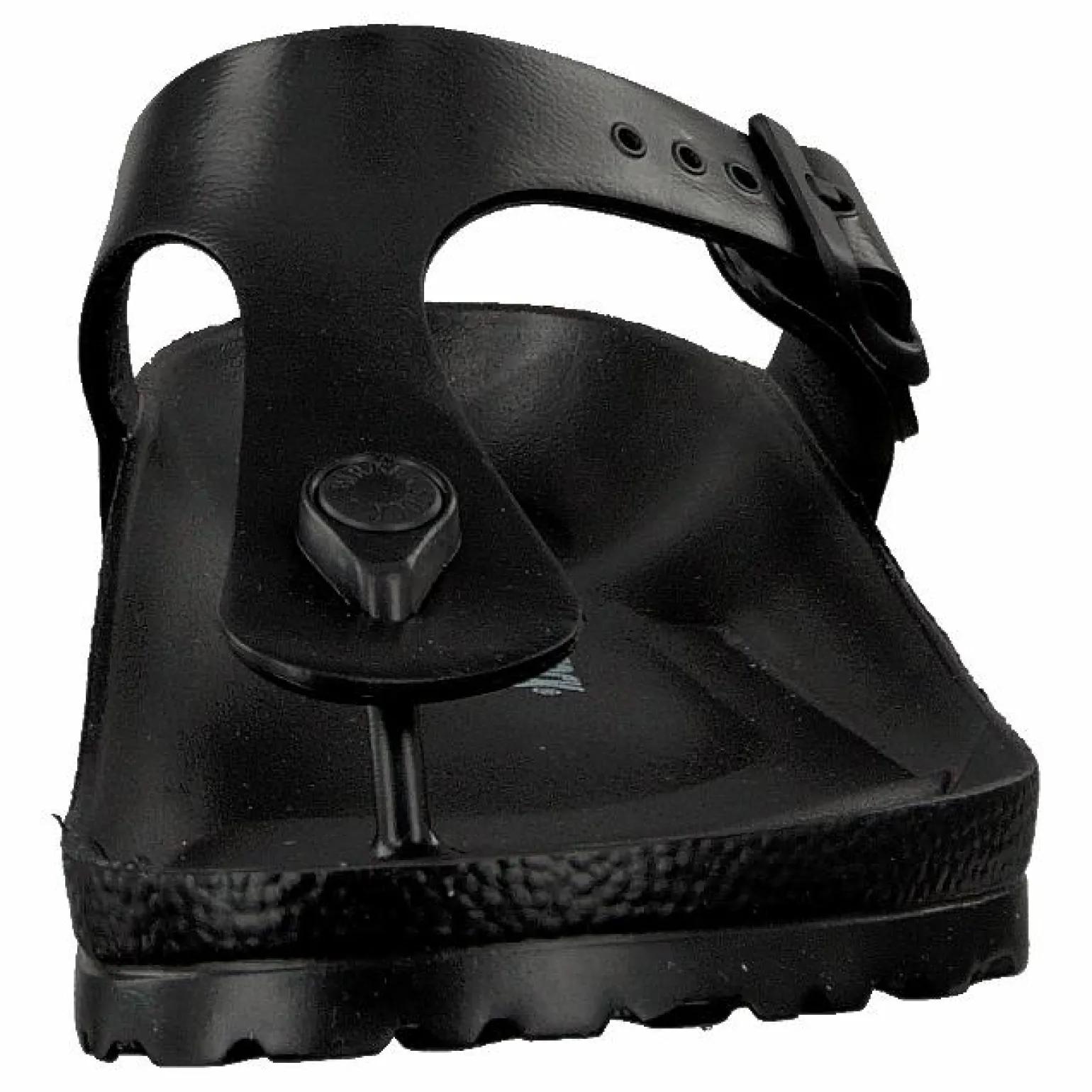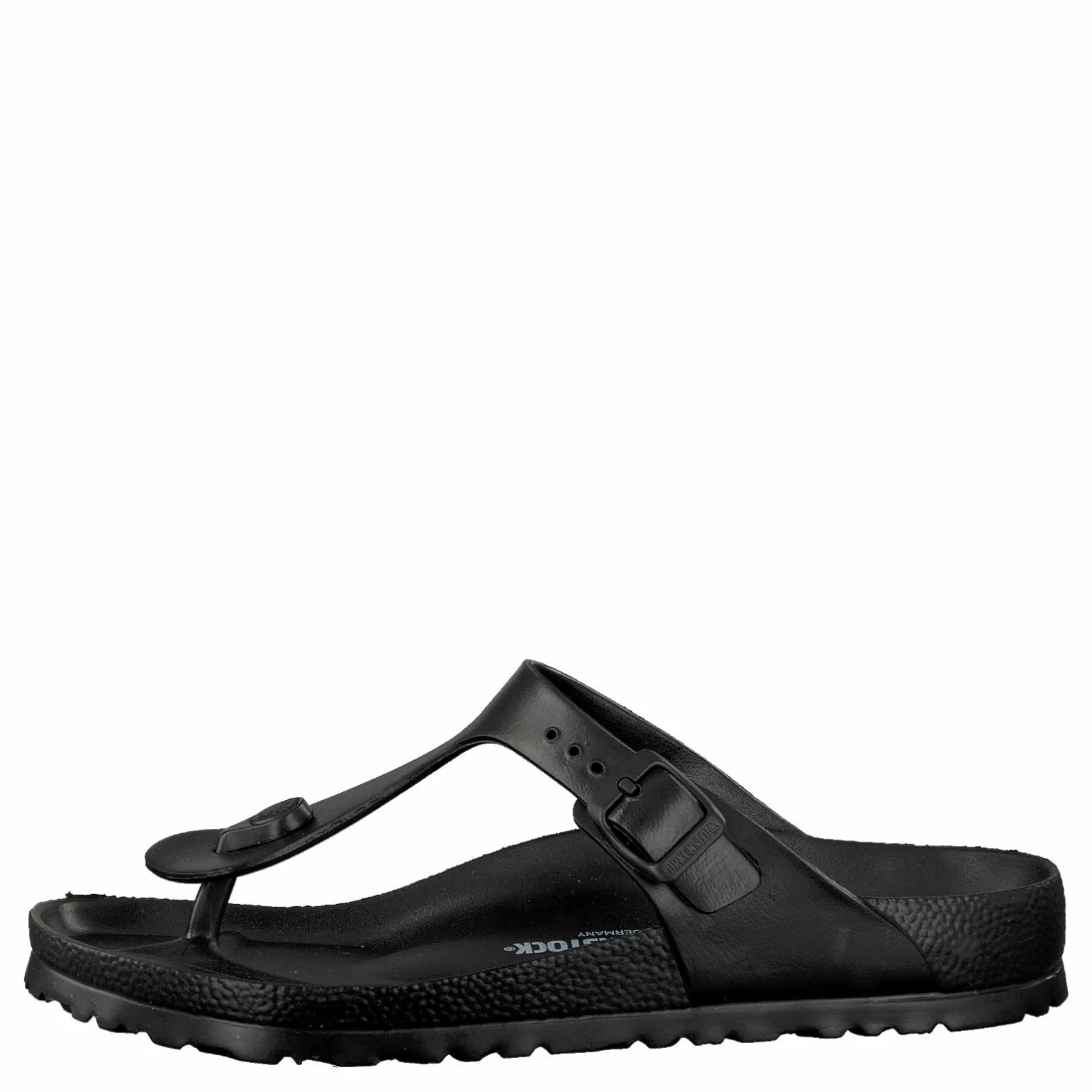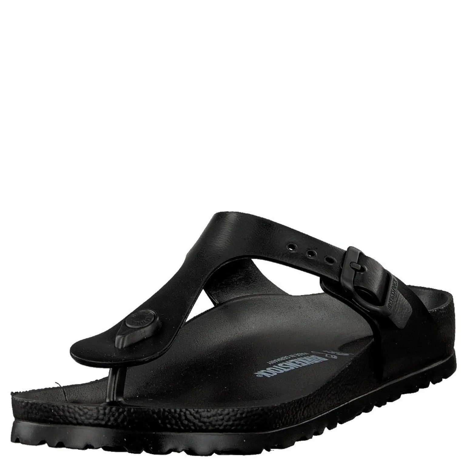 Birkenstocks gjorda av syntetiska material är det rätta valet för den som vill bära de ikoniska sandalerna året runt. Gizeh EVA är en klassisk svart modell med en låg, bekväm klack. Fotbädden är täckt av mjukt syntetiskt material och erbjuder mer stoppning än naturmaterial. Den robusta sulan är gjord av syntetiskt material och är en flexibel men stabil struktur som ger fötterna stötdämpning och skydd.
