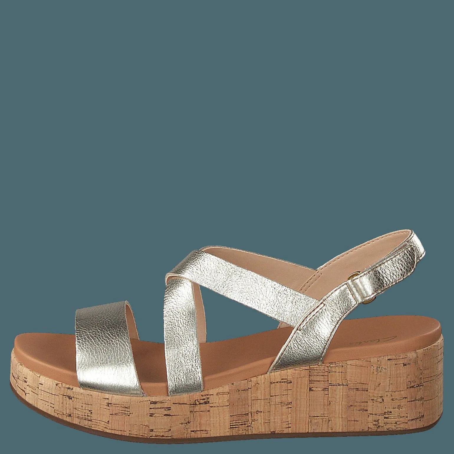 Clarks Kimmei Cork är lika avslappnade och bekväma skor för kvinnor. De är gjorda av läder och gummi, med ett spänne. De är bruna med hälhöjd på 4 tum.