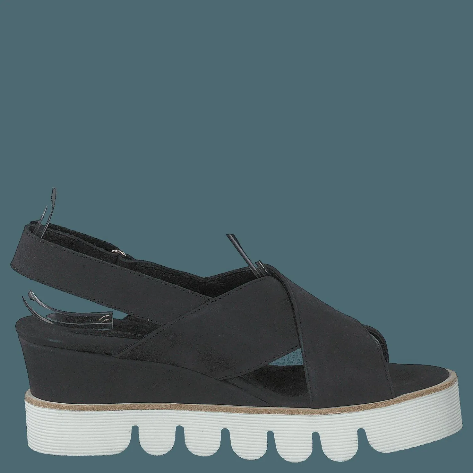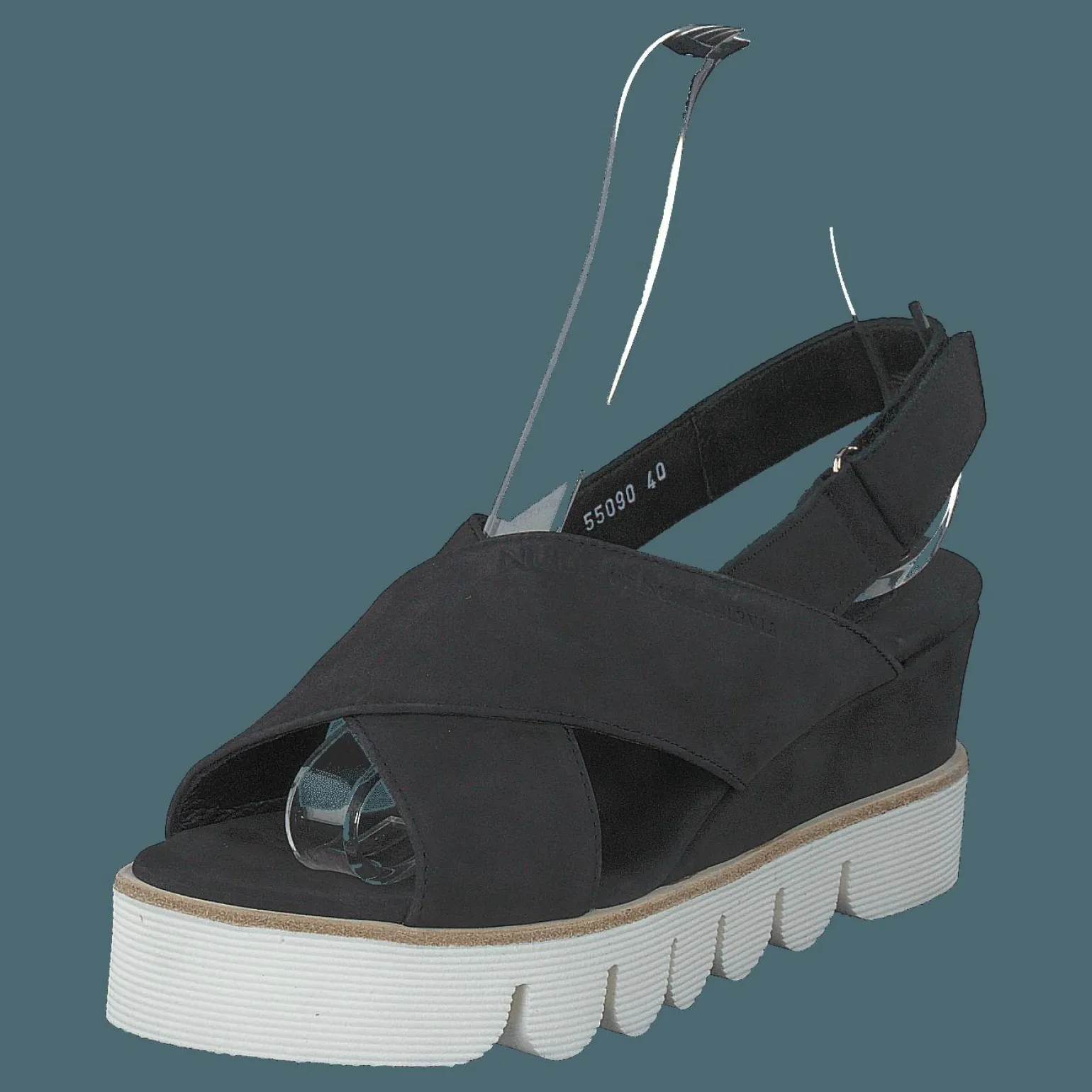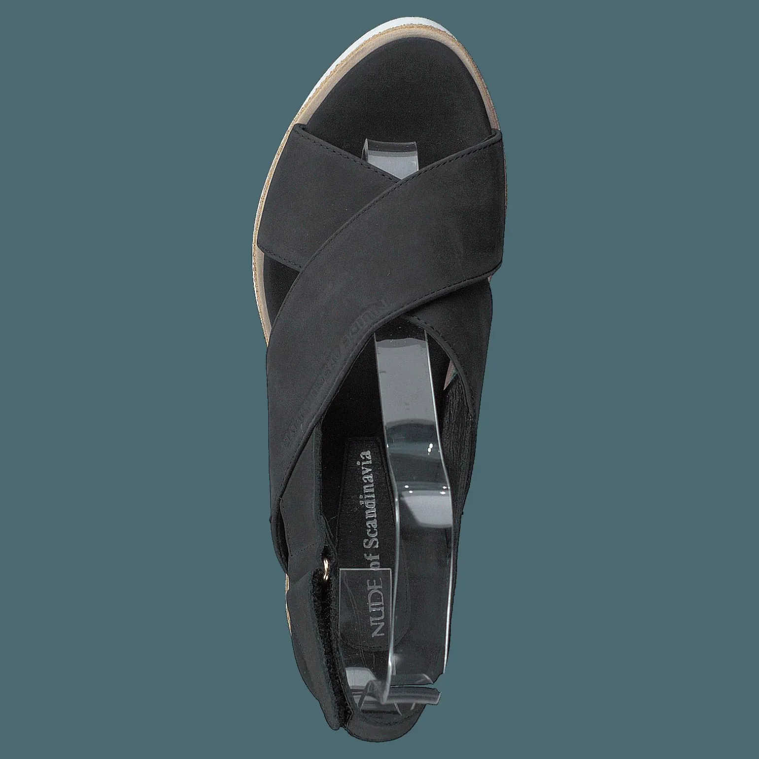 NADJA-sandalen är en avslappnad, minimalistisk damsko. Varumärket, Nude of Scandinavia, fokuserar på komfort och enkelhet. Denna stil finns i svart och har en nubuck-exteriör.