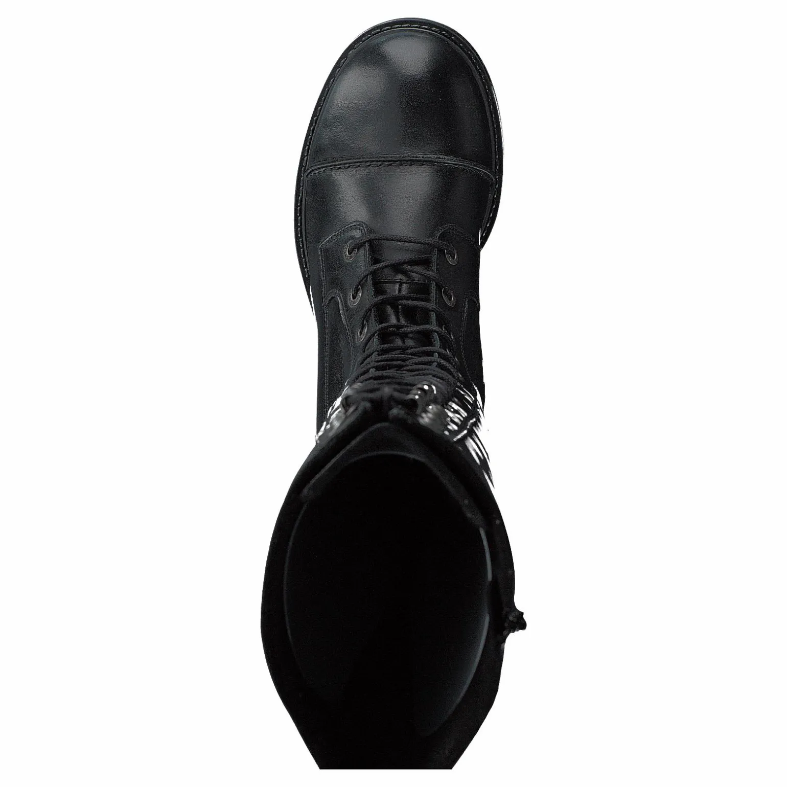 Med en ovandel i svart läder är den här högskurna tossan ett snyggt tillskott till din garderob. Dess knytband med snörning framtill ger dig en anpassad passform, medan läderfodret och innersulan gör att fötterna känns fantastiska.