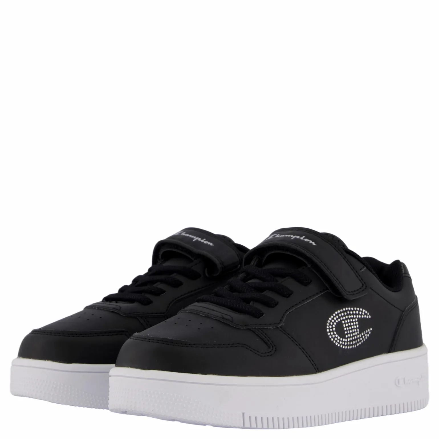 Lyft upp din vardagsstil med Champions platåsneakers! Dessa skor är gjorda av slitstarkt syntetiskt läder och har klassiska snören och en trendig logotyp på sidan. Den tjocka sulan erbjuder både dämpning och komfort, perfekt för heldagsäventyr i en modern och stilren look.