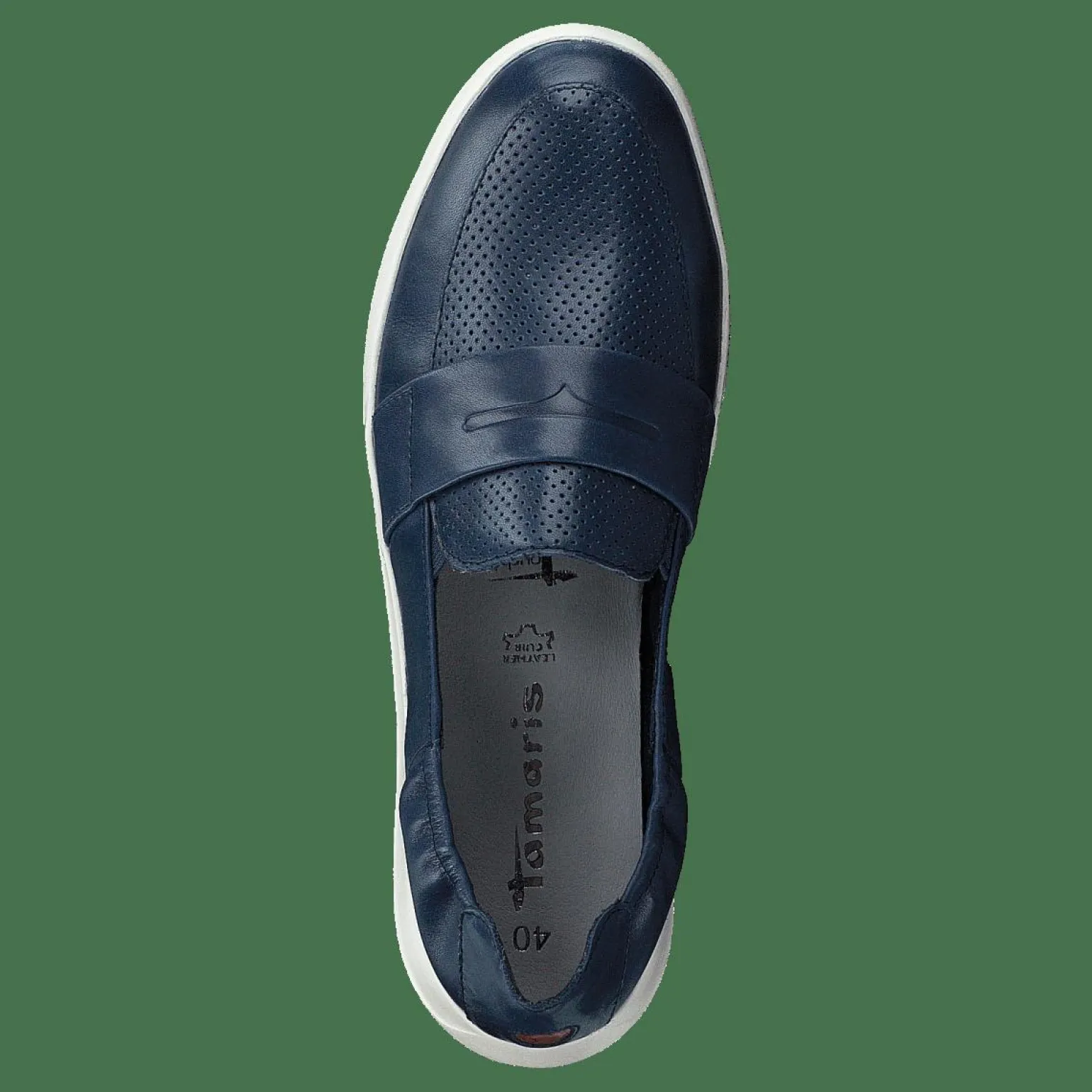 Dessa Tamaris 24704-24 skor för kvinnor är ett avslappnat och elegant val för alla tillfällen. De har överdel i blått läder och textilfoder med en justerbar kardborrerem på vristen. Dessa plattor har en tjock mellansula och en låg klack med gummikapslar på sulan.