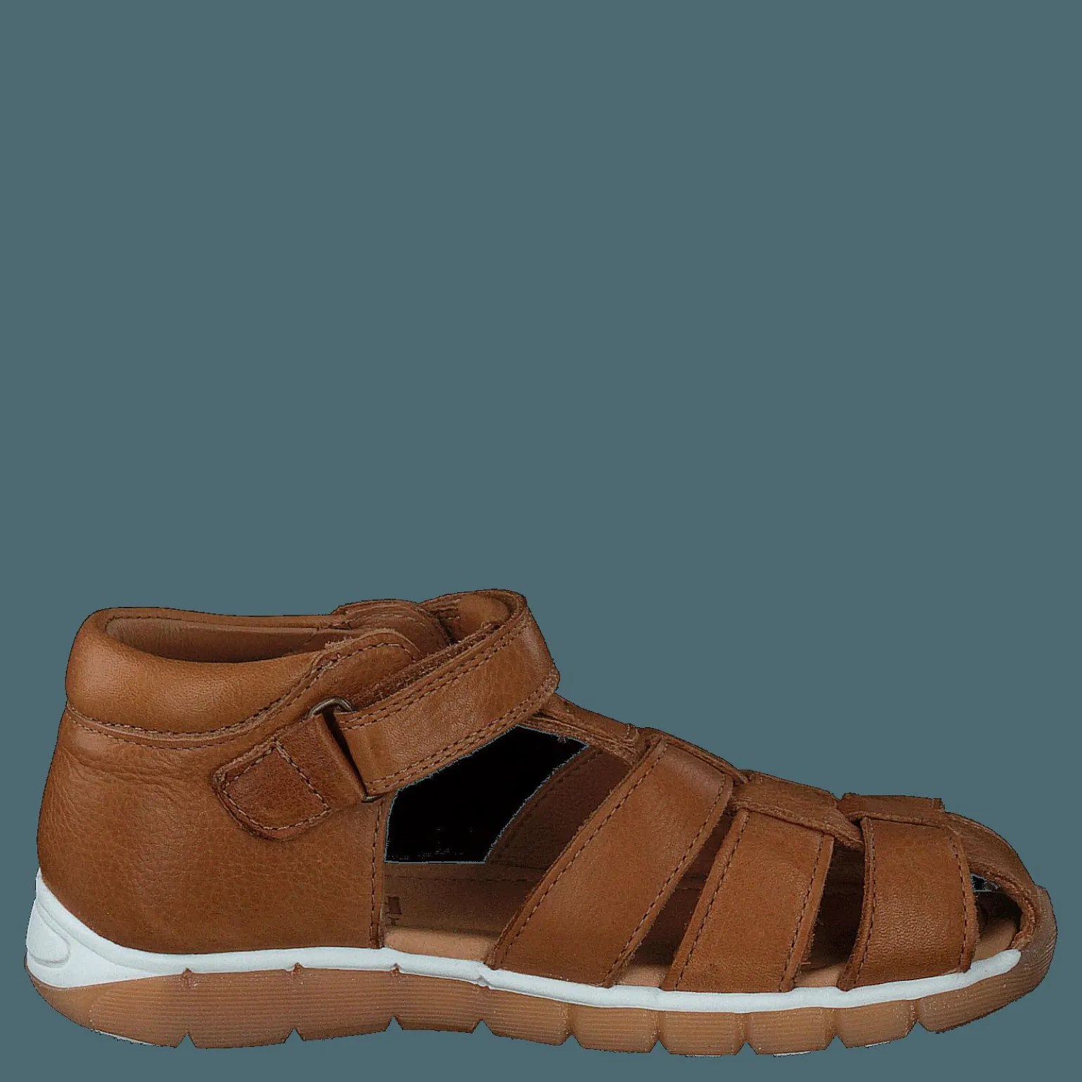 Denna lädersandal för tjejer är gjord av brunt äkta läder och har kardborreband som gör den lätt att ta på. Den är utformad med en mjuk innersula och har en gummisula som säkerställer bra grepp.
