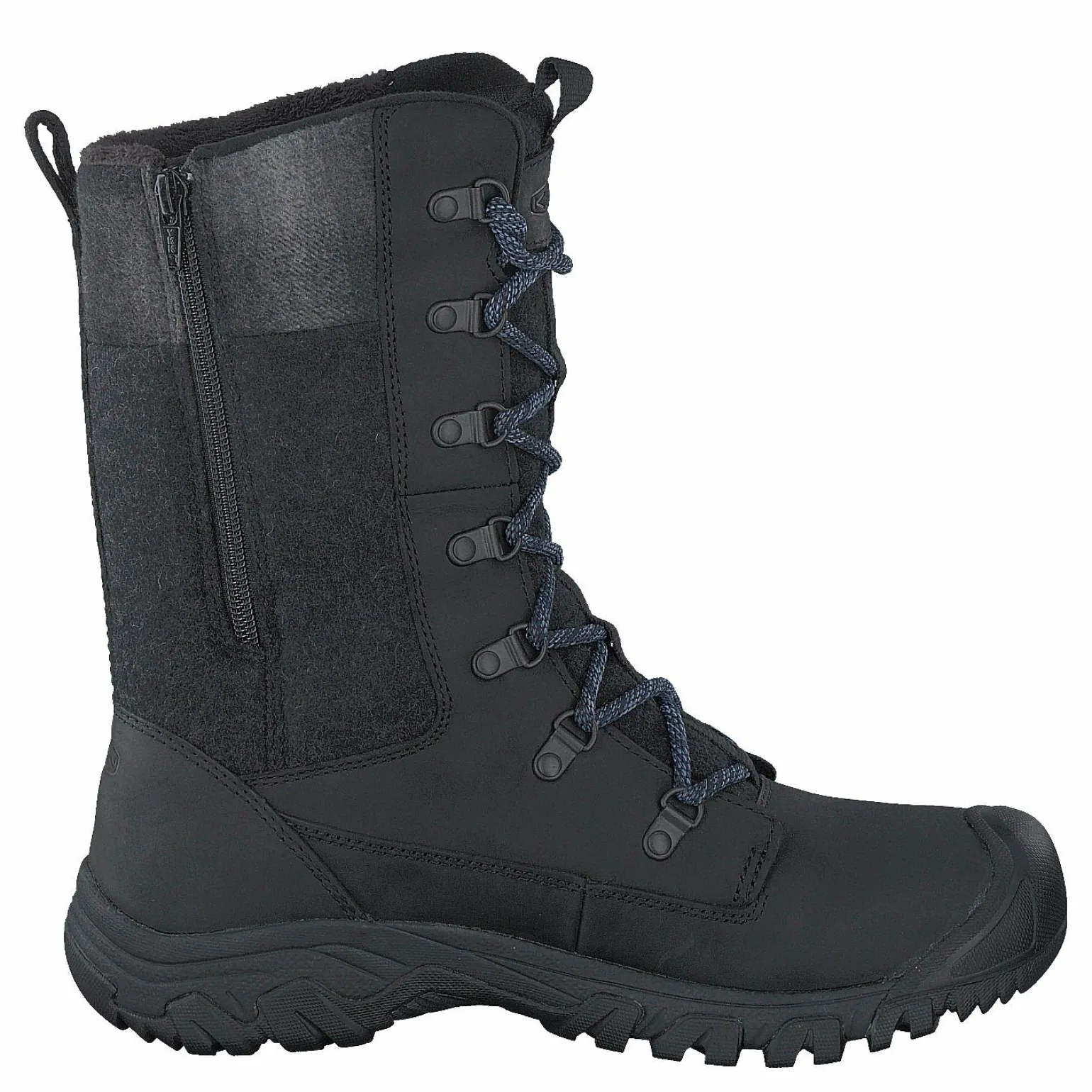 Denna damstövel är gjord av läder och syntetmaterial. Stöveln har en sportstil. Den har en höjd på 11,4 tum och en skafthöjd på 5,5 tum. Vikten är okänd och den finns i svart.