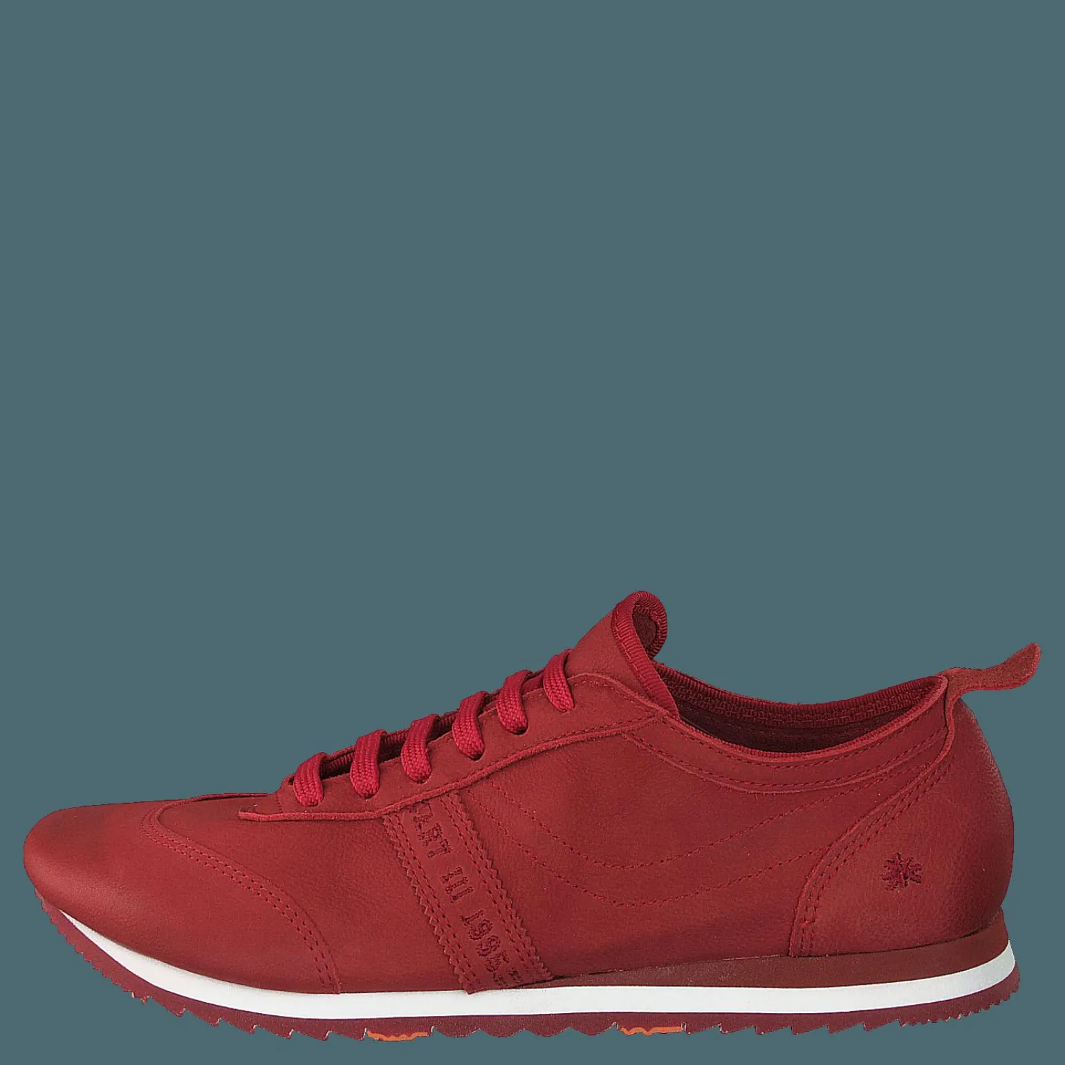 Kioto är en minimal sneaker som har en unik spetsdetalj. Den röda färgen och materialet som används i denna sko gör den perfekt för vardagskläder.